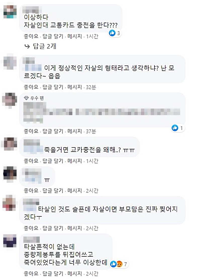타살 의혹을 제기하는 네티즌들은 극단적 선택하려는 사람이 미래를 대비해 교통카드를 충전하고 수능 교재 여러 권을 샀다는 게 이해가 되지 않는다고 지적했습니다. 또 발견 당시 종량제 봉투를 뒤집어쓰고 반듯하게 누워 있는 김 군의 시신 상태도 수상하다고 했습니다.