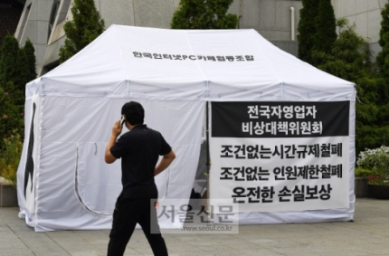 자영업자 비상대책위원회는 10월 7일 정부서울청사 앞에 천막을 치고 농성에 들어갔습니다.