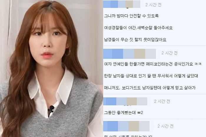 전효성의 반응에 남초 성향의 커뮤니티에서는 다소 과격한 반응이 나왔습니다. "존재하지 않는 범죄를 두려워하고, 공포를 조장하는 건 일종의 남성 혐오"라고 지적했습니다.