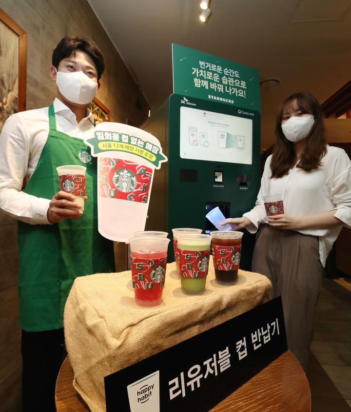 스타벅스 '일회용 컵 없는 매장'에서 판매하는 음료는 머그컵, 개인컵, 다회용 컵에 제공된다. 다회용 컵을 사용하면 보증금 1000원이 발생합니다.