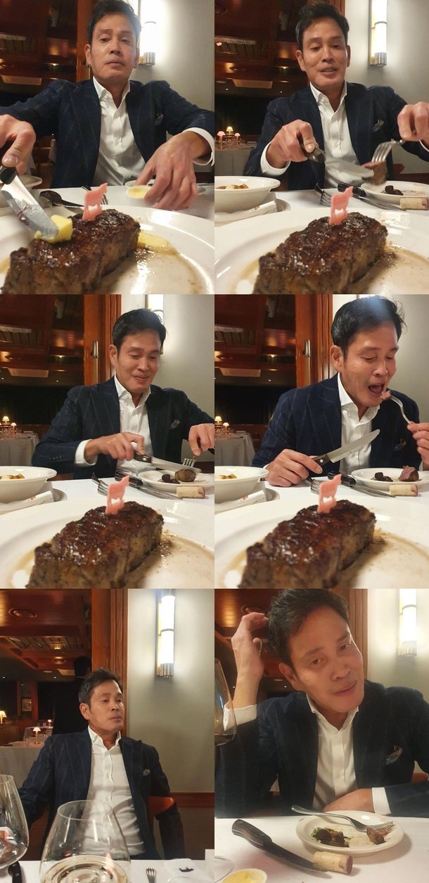 정 부회장은 멋쩍은 듯 카메라를 보기도 하고, 고기를 직접 썰거나 음식을 맛보는 등 총 10장의 사진을 공개했습니다.