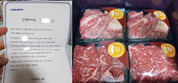 10일 온라인 커뮤니티에는 ‘퇴사한지 11년 된 회사에서 온 연락’이라는 제목으로 글이 게재됐습니다. 해당 게시물에는 컴퓨터 유통업체 컴퓨존 노인호 대표가 퇴사한 직원에게 보낸 감사편지와 한우세트 선물 사진이 담겨 있었습니다.