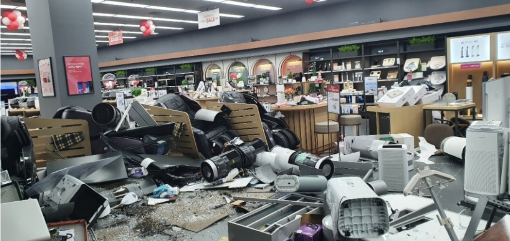 하이마트 매장 안의 고가의 가전제품들이 모두 산산조각이 났습니다 .