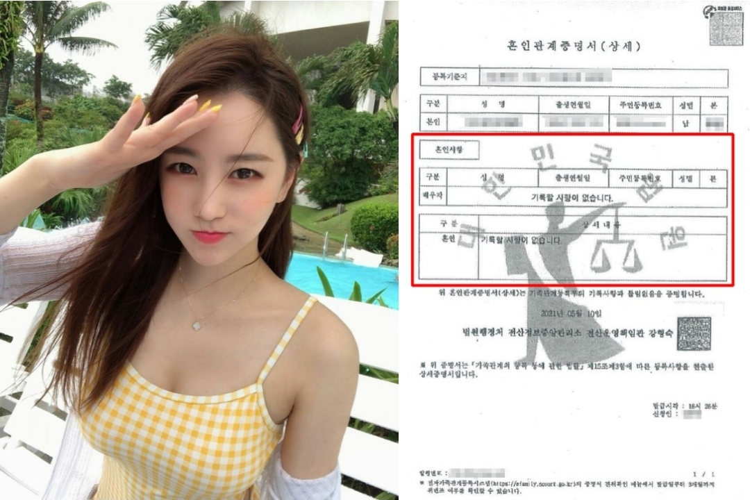 그러면서 전 남자친구가 보내준 결혼관계증명서를 공개했습니다.