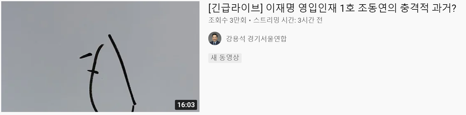 11월 30일 강용석이 진행하는 유튜브 '경기서울연합'채널에 '이재명 영입인재 1호, 조동연의 충격적인 과거?'라는 동영상이 업로드됐습니다.