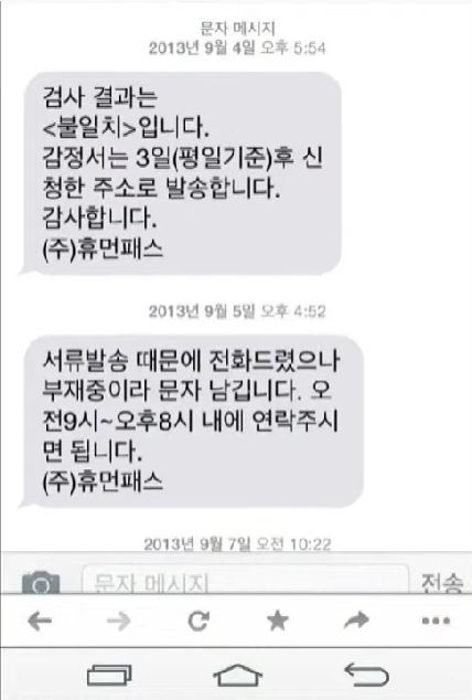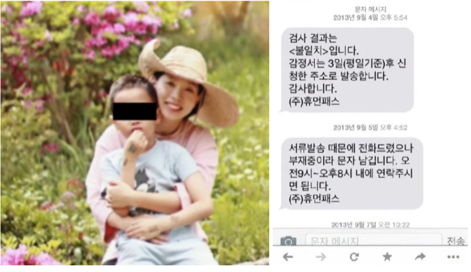 가세연은 조동연의 첫 번째 남편이 유전자 검사 전문업체인 (주)휴먼 패스로부터부터 '불일치' 판정을 통보받은 문자를 공개했습니다.