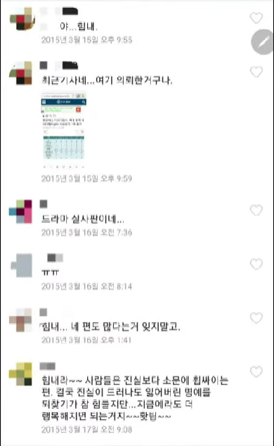 - 첫 번째 남편이 카카오 스토리에 공개한 문자의 "드라마 실사판이네", "힘내... 네 편도 많다는 거 잊지 말고"라는 댓글이 달렸습니다.
