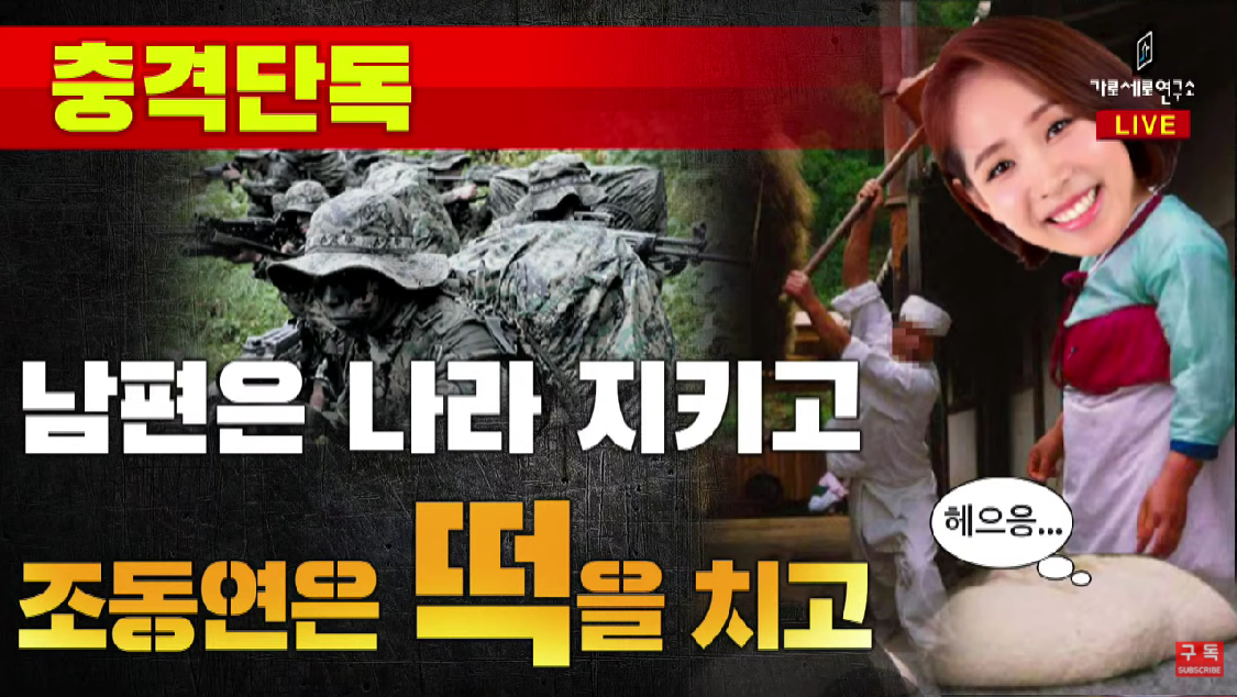 강용석 변호사와 김세의 대표가 운영하는 가로세로연구소는 12월 1일 "충격 단독, 남편은 나라 지키고 조동연은 떡을 치고"라는 다소 자극적인 제목의 라이브 방송을 진행했습니다.
