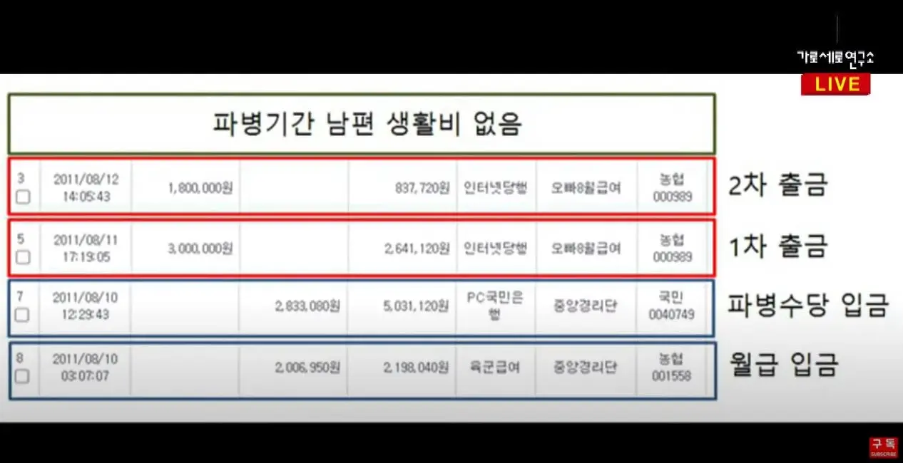 가세연은 조동연 남편의 통장 이체 내역도 공개했습니다.