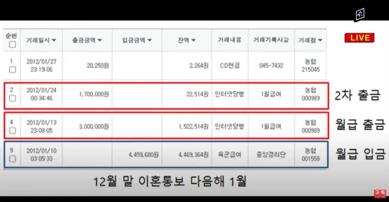 평소 조동연의 남편은 조동연에게 통장과 공인인증서, 은행 보안카드를 모두 맡기며 월급은 모두 다 조동연에게 들어가고 자신은 용돈만 받아 썼는데 이혼 통보와 함께 연락두절인 상태에서 조동연은 2012년 1월 13일과 24일 모두 470만원을 몰래 인출해가며 결국 조동연의 남편은 잔액 2만 2천 514원이 되었습니다.