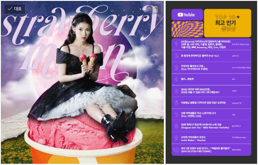 올해 국내 유튜브 이용자들이 가장 많이 본 영상에는 국내외 가수들의 노래 모음집, 노래 커버 영상 등이 순위에 올랐습니다. 이 중 1위는 아이유였습니다.