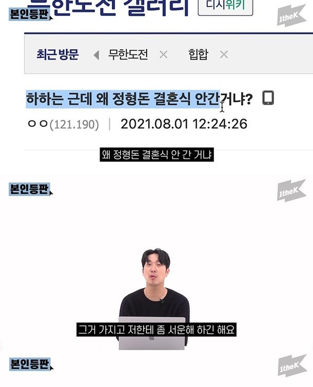 이어 한 온라인 커뮤니티에 올라왔던 '하하는 근데 왜 정형돈 결혼식에 안 간 거냐?'라는 질문에 대해 직접 답했습니다.