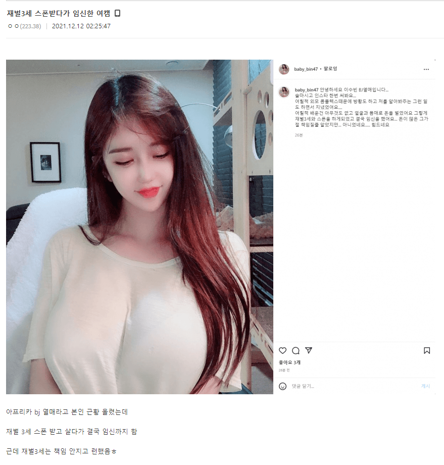 앞서 BJ 열매는 재벌 3세와 스폰 계약을 맺고 임신을 했다는 내용의 글을 본인의 인스타에 올렸다는 주장이 나와서 진위 여부에 누리꾼들의 관심이 쏠렸습니다.