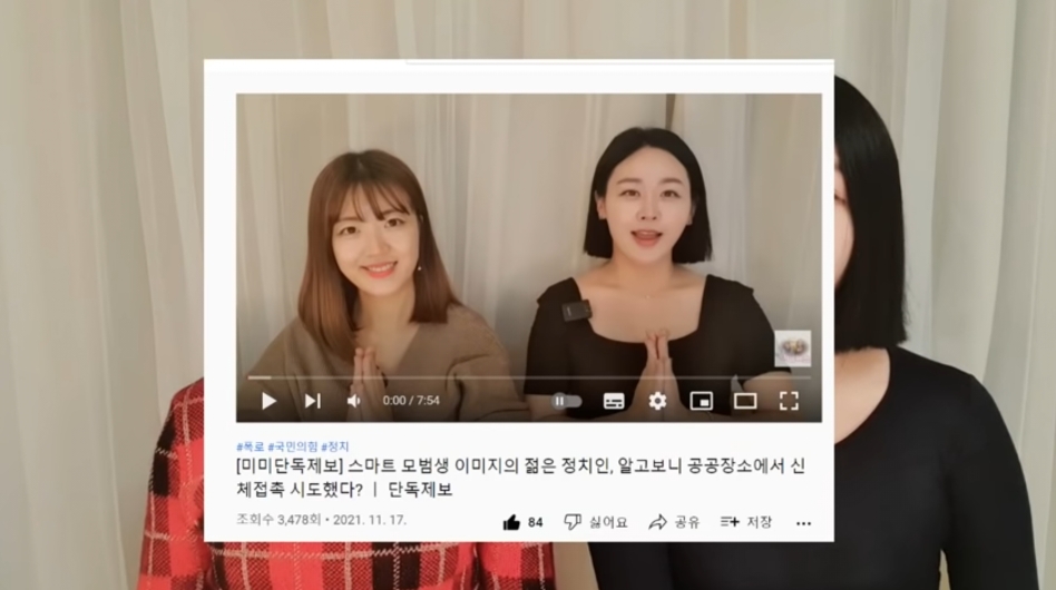 현직 정치부 기자가 운영하는 유튜브 채널 미미뉴스는 지난 11월 17일 "스마트 모범생 이미지의 정치인, 공공장소에서 신체 접촉을?" 이란 제목의 동영상을 게재했습니다. 송미미 기자는 진짜 유