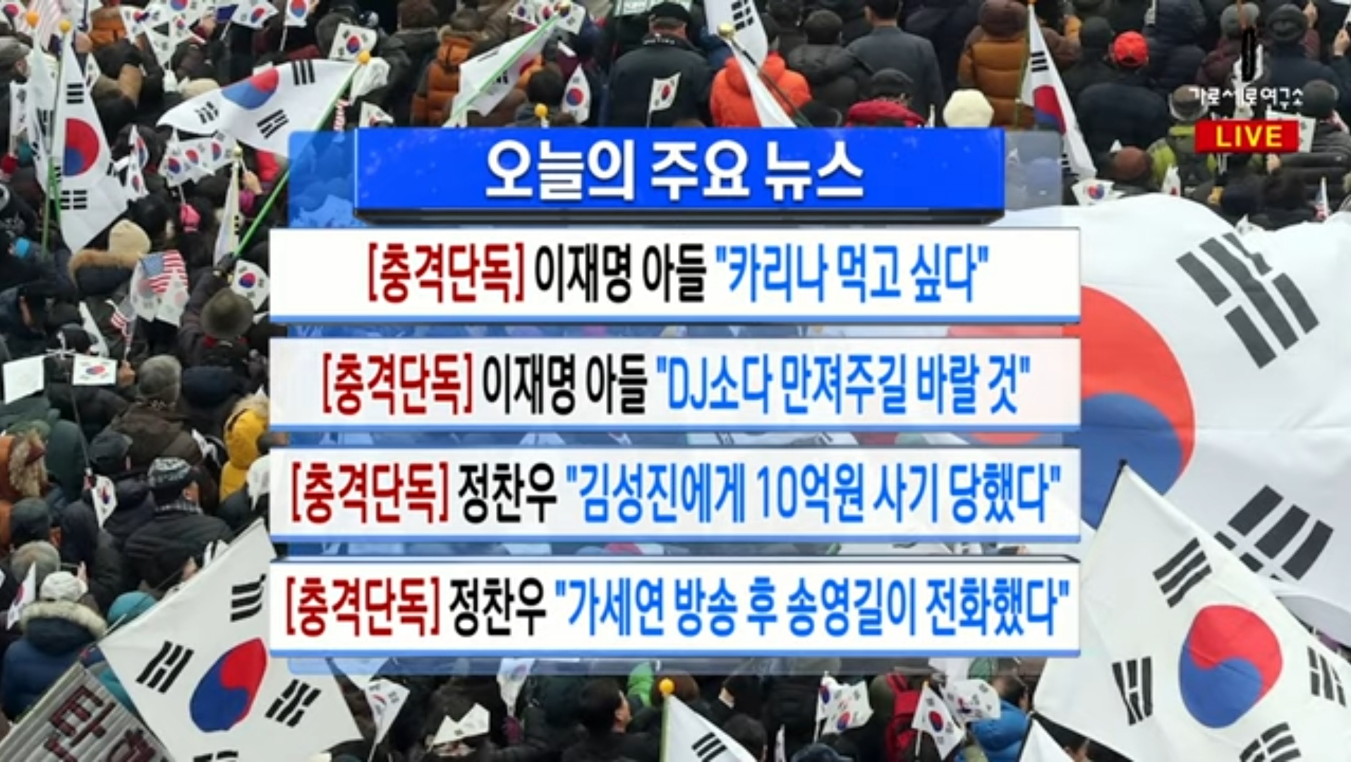 가로세로연구소(이하 가세연)는 12월 31일 "(충격단독) 이재명 아들, 카리나 먹고 싶다" 영상을 게재했습니다.