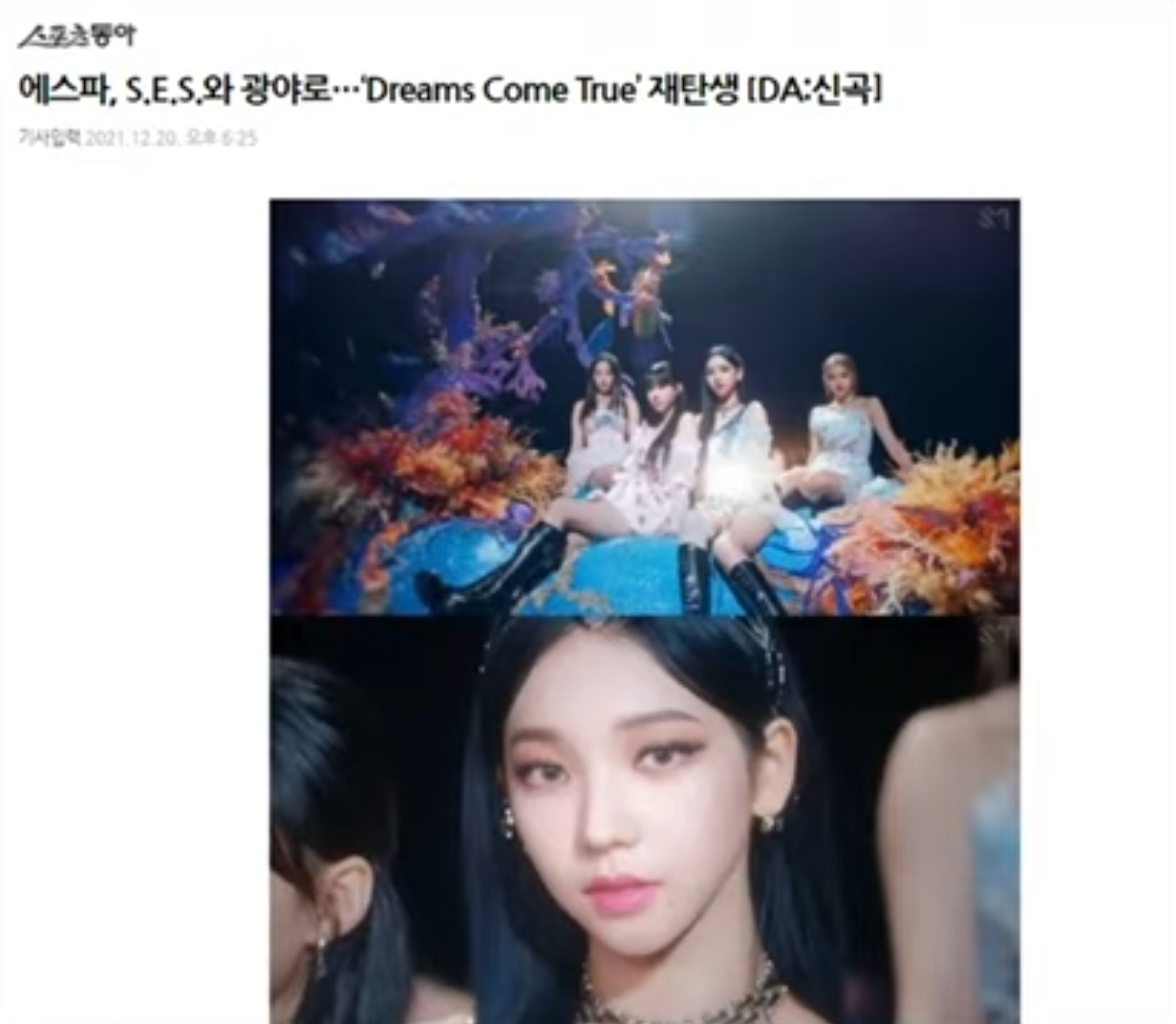 최근 카리나가 소속되어 있는 에스파는 ‘리마스터링 프로젝트’의 일환으로 SM엔터테인먼트의 레전드 걸그룹 S.E.S의 명곡 ‘드림 컴 트루(Dream come true)’를 새롭게 선보였습니다.