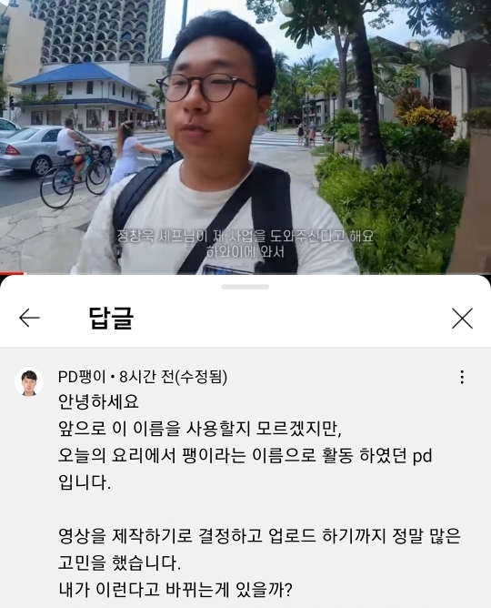 [ 정호영 셰프 전 편집자 PD 팽이 글 전문]
