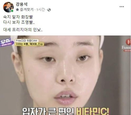 강 변호사는 1월 23일 페이스북에 최근 '솔로지옥'에 출연해 인기를 모았던 화장을 하지 않은 송지아 사진을 올리며 “속지 말자 화장발. 다시 보자 조명발. 대세 프리지아의 민낯”이라고 적었습니다.