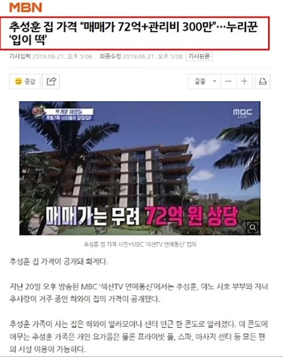 "2017년 당시 64평 형이 53억 원이었고 관리비는 월 300만 원 이상이며 추성훈 가족 사는 곳도 바로 이 콘도로 홍라희 전 리움미술관 관장도 소유하고 있다"라고 밝혔습니다.