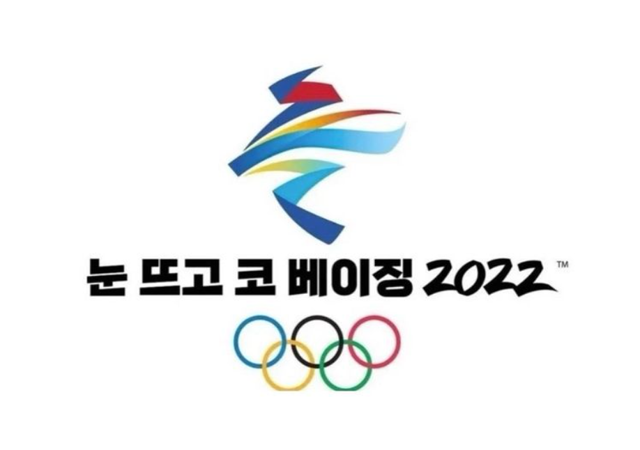 사진엔 '눈 뜨고 코 베이징'이라고 쓰여 있습니다. 올림픽을 상징하는 오륜기가 바로 아래 새겨져 있습니다.
