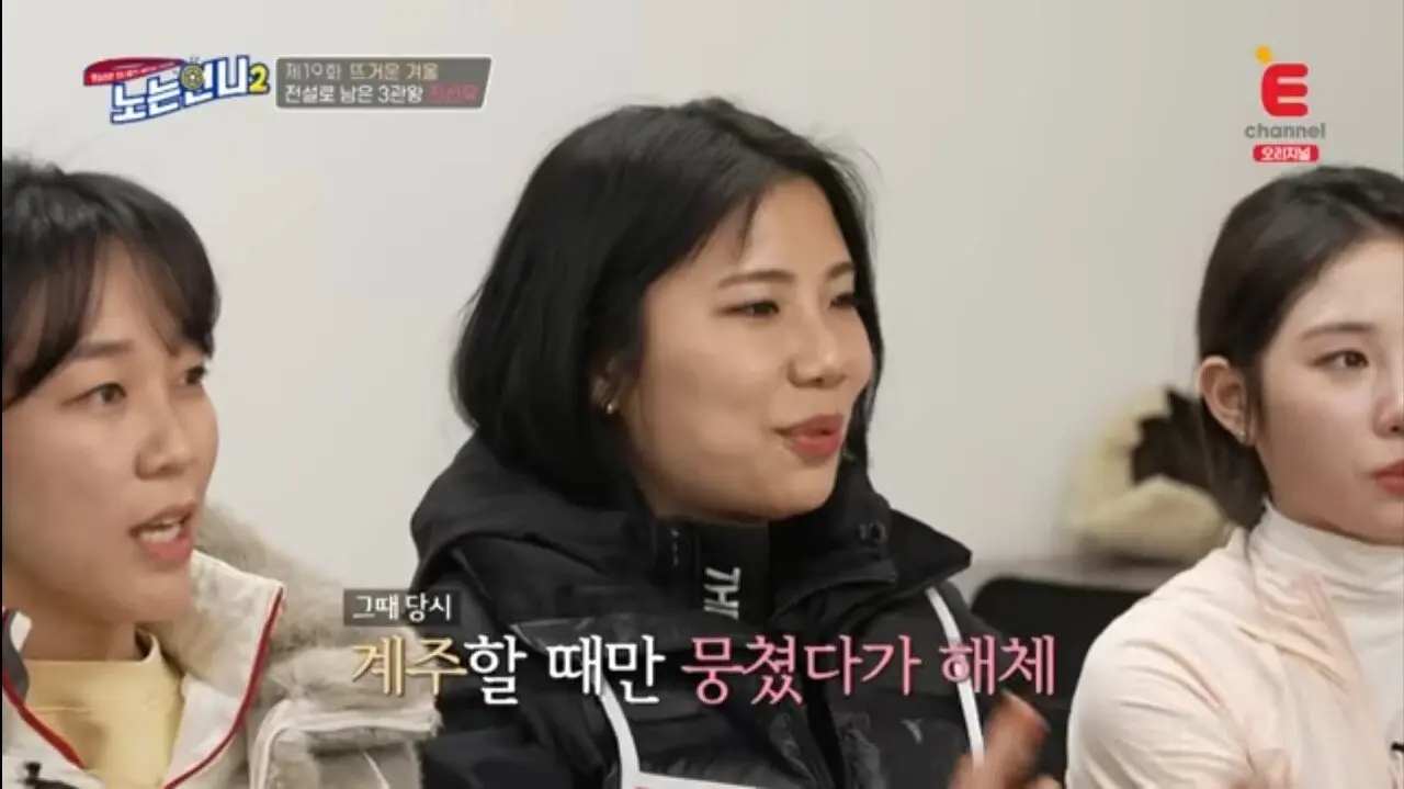 지난달 2월 11일 방송된 E채널 '노는 언니2' 19회에 조해리, 진선유, 최다빈, 송유진, 박규림 등 동계 스포츠 스타들이 게스트로 출연했습니다.