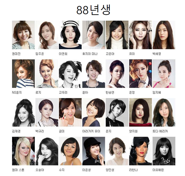 1988년생 걸그룹 멤버로는 원더걸스 유빈, 카라 박규리, 카라 한승연, 레인보우 승아,나인뮤지스 이유애린, 레인보우 고우리, 애프터스쿨 유이, 티아라 은정, 스피카 양지원, 스피카 나래, 레인보우 재경 등이 있습니다. 추가로 3인 걸그룹으로는 가비엔제이,브랜뉴데이도 있으며 이중 가비엔제이 제니, 서린이 88년생, 브랜뉴데이 수지도 88년생입니다.